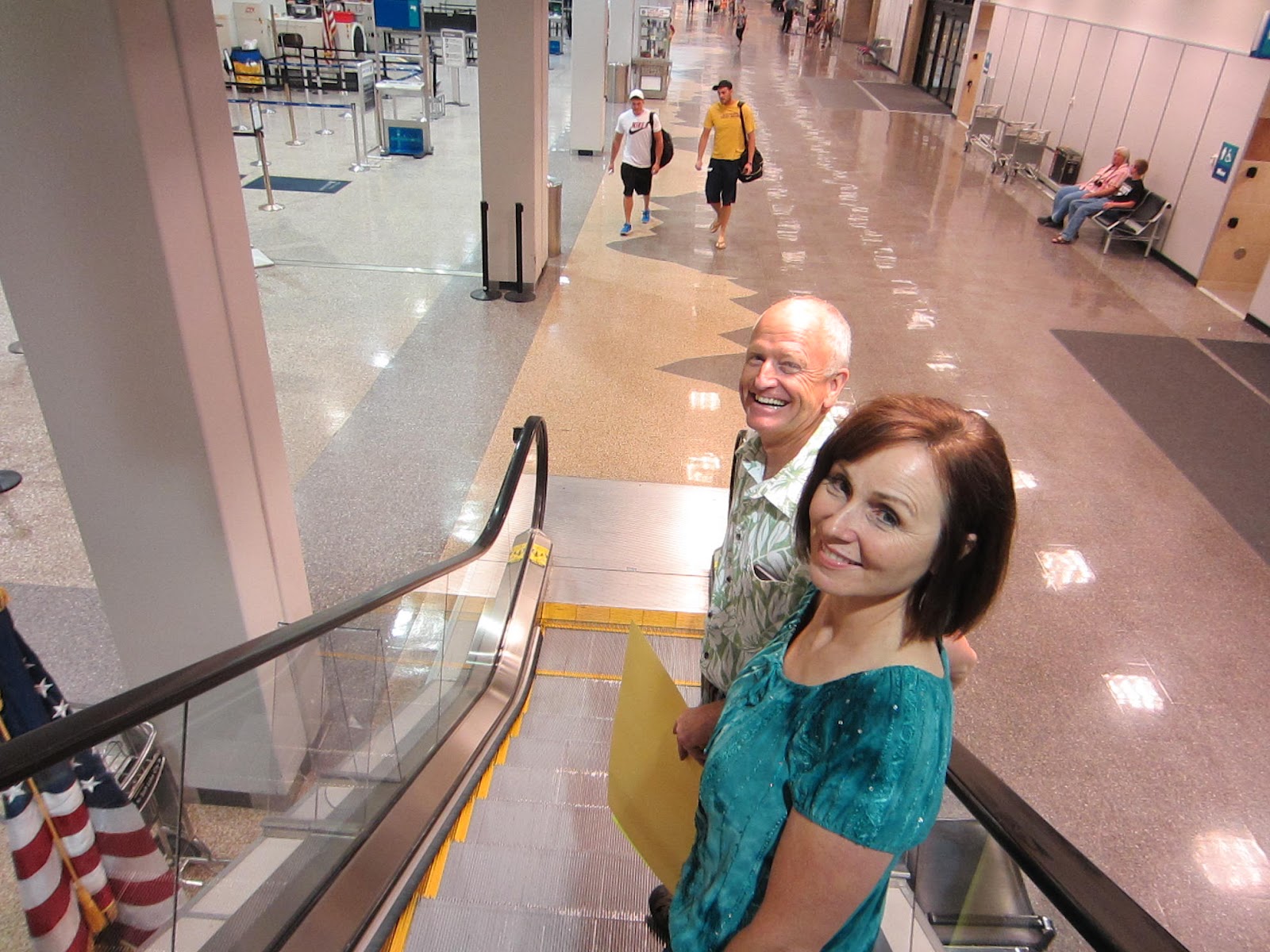Briggs family along with Elder Maughan's family waiting in the airport (they are all wearing their pj's because it was so late).